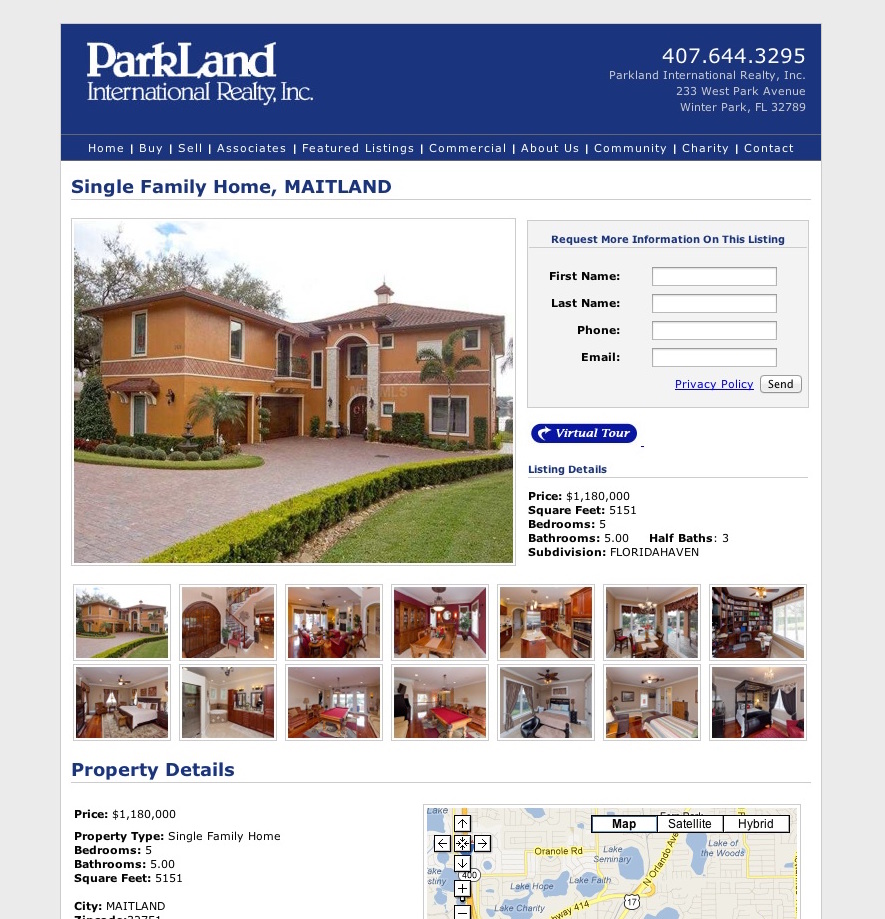 Parkland International Realty Inc. Client Parkland International Services MLS Driven website realtime 12 hour updates pulled from state MLS Date 2008 Team Designers - Developers One of the first Central Florida Realtime Real estate websites running MLS custom download Our Challenge Oapture and download over a million listings every day, optimize the data and update the current database. Keep old …